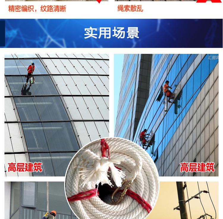 高空安全绳攀爬绳高强绳锦纶绳加钢丝绳吊兰绳急救逃生绳外墙装修