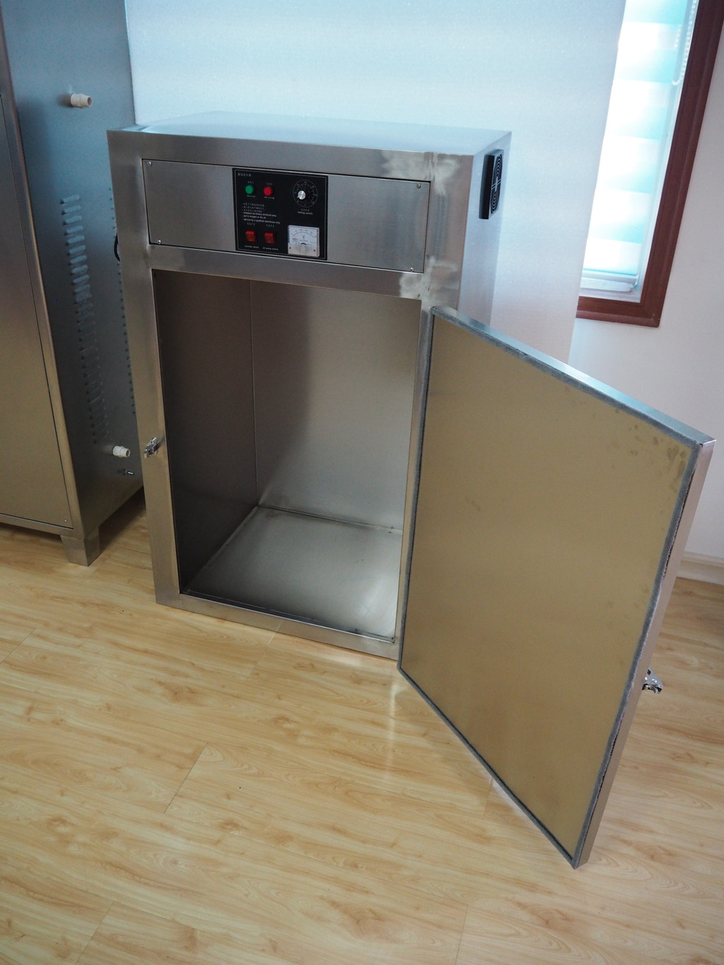 4、臭氧消毒柜具有定时功能,可无人职守。应用的机理与优越性食品行业应用臭氧的目的有两个方面:一是杀灭微生物-杀菌消毒;二是氧化分解有机或无机物污染气味-除臭净化 。两方面的应用基础均依赖于O3的强氧化性能和不稳定易分解的特性 。杀菌消毒臭氧为气体消毒剂,其杀菌过程为强氧化作用使微生物细胞中的多种成分产生反应,从而产生不可逆转的变化而死亡。臭氧灭活病毒是通过直接破坏其物质完成的。而杀灭细菌、霉菌类微生物则是臭氧首先作用于细胞膜,使膜构成成分受损伤,导致新陈代谢障碍并抑制其生长,臭氧继续渗透破坏膜内组织,直至杀死。湿度增加提高杀灭率,是由于高湿度下细胞膜膨胀变薄,其组织容易被臭氧破坏。除臭净化臭氧去除异味性能极好。依靠其氧化性能可快速分解产生臭味及其他气味的有机或无机物质。臭味的主要成分是胺R3N、硫化氢H2S、甲硫醇CH3SH等。臭氧对其氧化分解,生成物没有气味。臭氧与消毒剂比较臭氧作为高效广谱无残余污染的气体消毒剂比食品行业常用的消毒剂具有特殊的优越性臭氧会自行分解为氧气,不产生残余污染,消毒后不需通风换气。常规消毒均需通风换气或化学中和,麻烦而又降低消毒效果臭氧与紫外线照射杀菌比较紫外线以光波辐射作用杀菌,只有照射到的位置且达到照射强度标准才有杀菌效果。食品加工车间很高、很大,照射强度与距离平方成反比,强度不够,照射又有很大死角。臭氧为气体,扩散性好,无死角,浓度均匀紫外线杀菌在相对湿度60%以上时效果急剧下降,80%湿度上时反可诱使细菌复活。臭氧则相反,湿度越高杀菌效果越好,对食品行业80%-90%高湿环境特别适合
