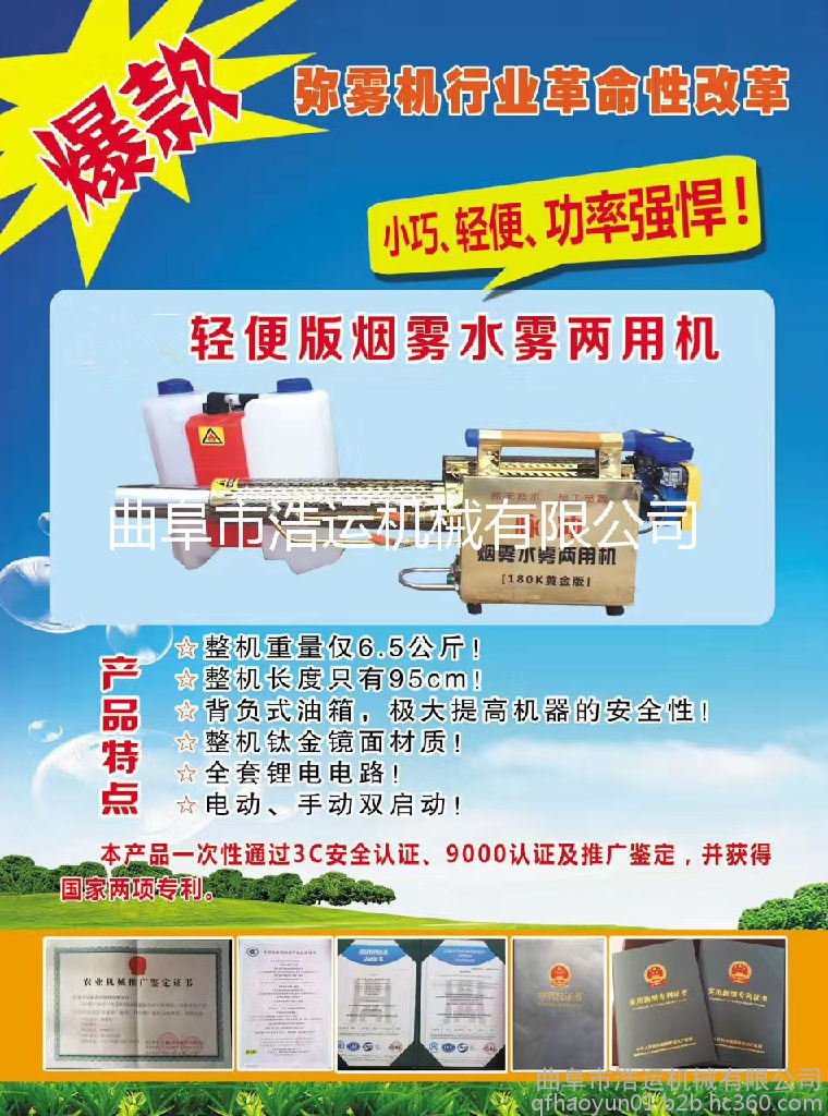 山东曲阜浩运机械工厂专业生产制造双喷嘴独立水冷管农田蔬菜打药机 背负式弥雾机