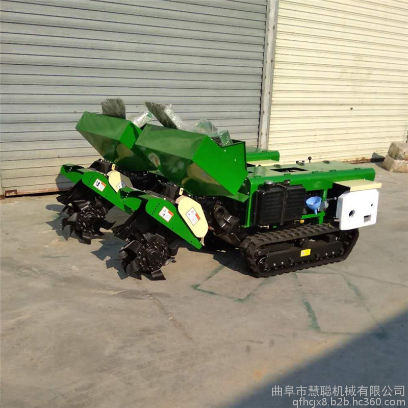履带开沟施肥机是一款多功能田园果园管理机械;特点是开沟施肥/回填自动化一次性完成!固态化肥(颗粒/粉末);有机肥/厩肥都可以实现自动化完成。也可以单独开沟二次回填,还可以装配/旋耕犁/锄草机具!由于农家肥和化肥的肥料性质差别很大,这种开沟施肥机是您的选择!这种开沟施肥机的工作原理是由双叶片的螺旋式推进器横向将肥料排出下落到沟里;在整个机器开沟幅宽内均匀施肥。