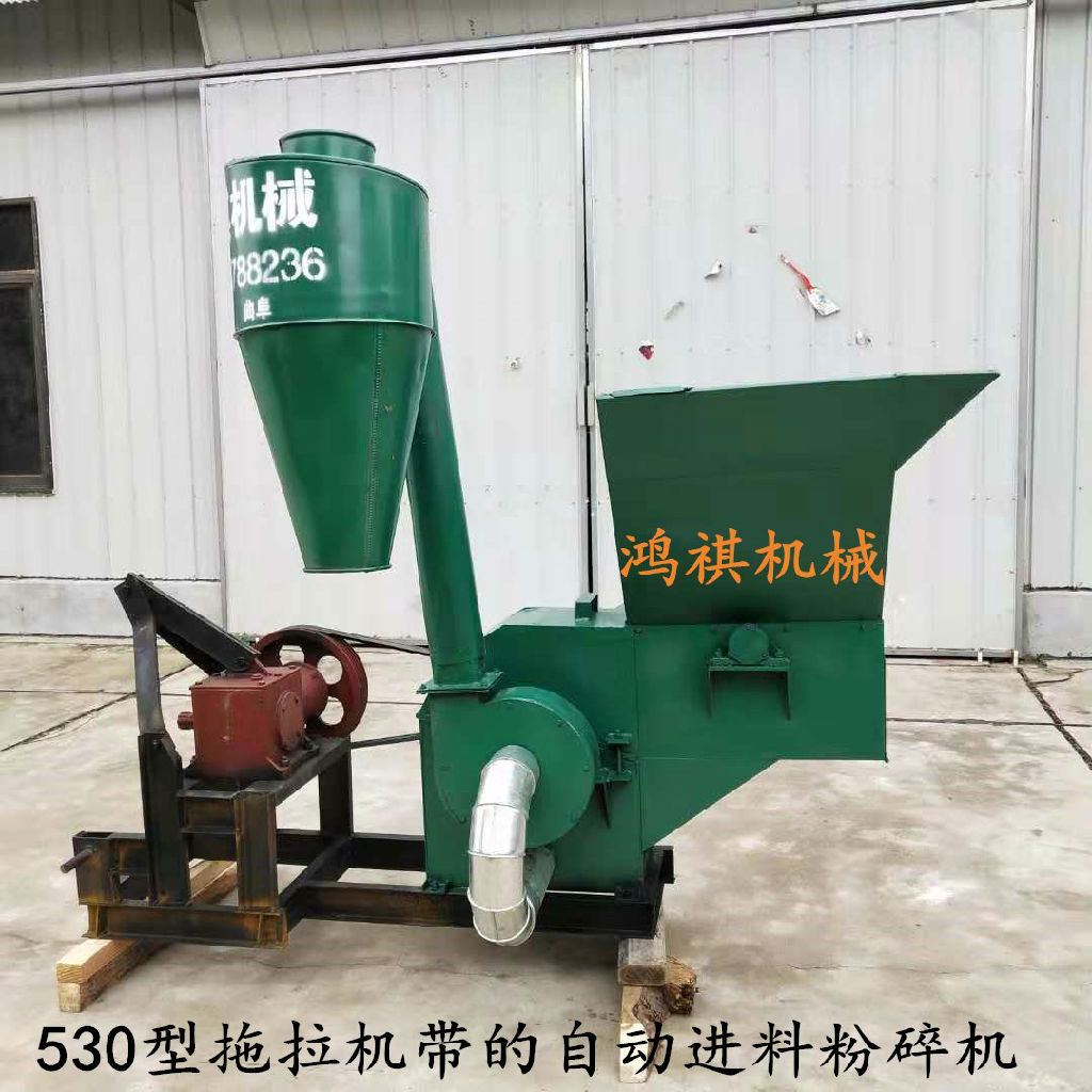 自动进料粉碎机系列粉碎机可粉碎各种干湿原料,如玉米、高梁、麦秆、豆秆、玉米秸、花生秧、红薯秧、苜蓿草,花生皮、干杂草等各类杂粮干湿物料类以及粗破碎后的饼类等紧凑的结构,使物料在旋转气流中紧密地磨擦和强烈的冲击研磨,并在叶片与磨块之间的隙缝中,进行再次研磨,饲料粉碎机作为饲料工业的主要装备,对饲料质量、饲料报酬、饲料加工成本的形成是一个重要因素。 自动进料粉碎机系列粉碎机结构合理,坚固耐用、安全可靠、安装容易,操作方便,振动性小,适用于各种饲料厂单独或配套使用。干杂草等各类杂粮干物料类以及粗破碎后的饼类等,本系列粉碎机结构合理,坚固耐用、安全可靠、安装容易,操作方便,除尘自动进料粉碎机主要适用于中低硬度物料的粉碎, 可靠无松动;两机皮带轮应处在一条直线上,不得偏斜。 产品结构及工作原理;可与各种形式的喂料结构相配,锤片为对称排列。粉碎机工作时,物料进入粉碎室,在高速旋转的锤片打击和筛板摩擦作用下,物料逐渐被粉碎,并在离心力和气流作用下,穿过底部出料口排出。