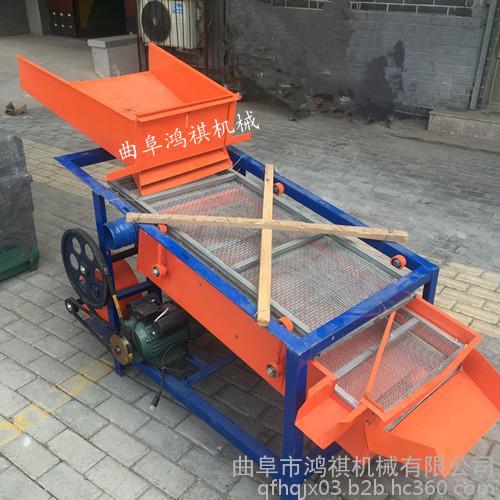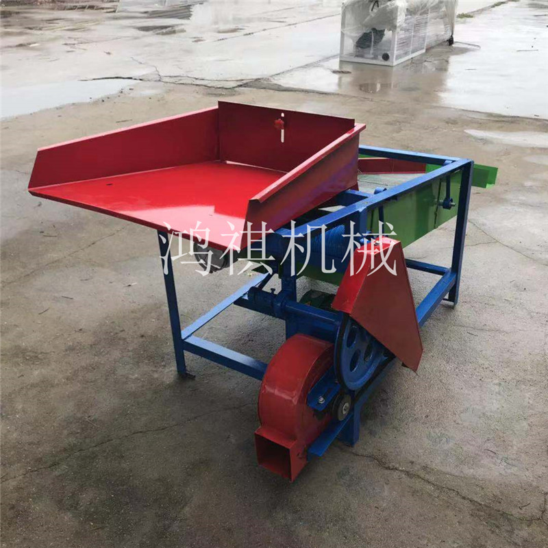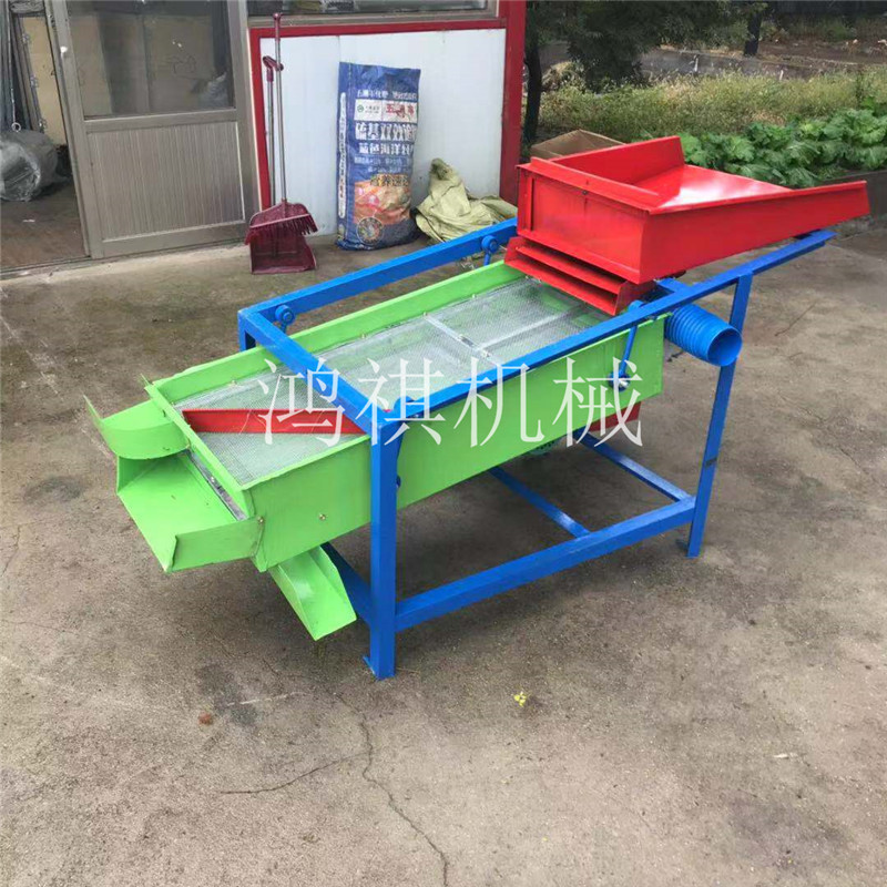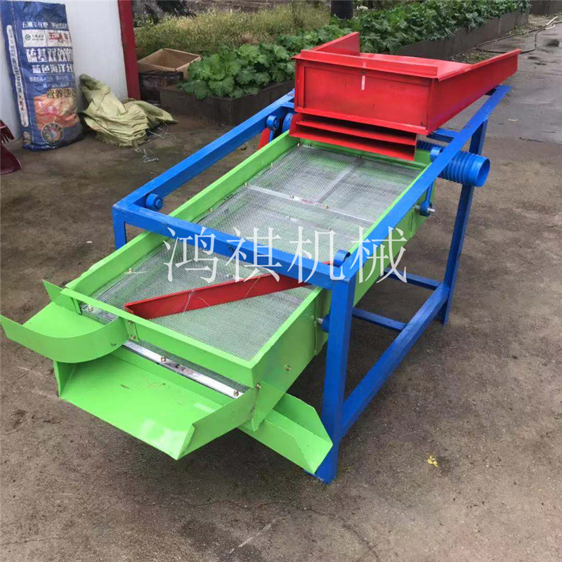 该精选筛为二层筛网,先经过进料口处风机抽风,直接抽走重量轻的杂叶或麦秸秆,上层的初次筛分在把大杂清理过,好的粮食(种子)直接落到下层晒网上,下层筛网会把粮食(种子)中的小杂。小石子,有缺陷的粮食(种子)接漏掉,完好的粮食(种子)会从出料口筛分开出来。该小型清粮机解决了扬场机的功能单一,不能有效去除石子,土块的缺陷,更能为清理,当净选粮食(种子)带来满意的效果。该机有占地小,移动方便,便以维修,除尘除杂效率明显,能耗低,使用简便等优点。真可谓是中小型粮食清理净选筛中的战斗机!
