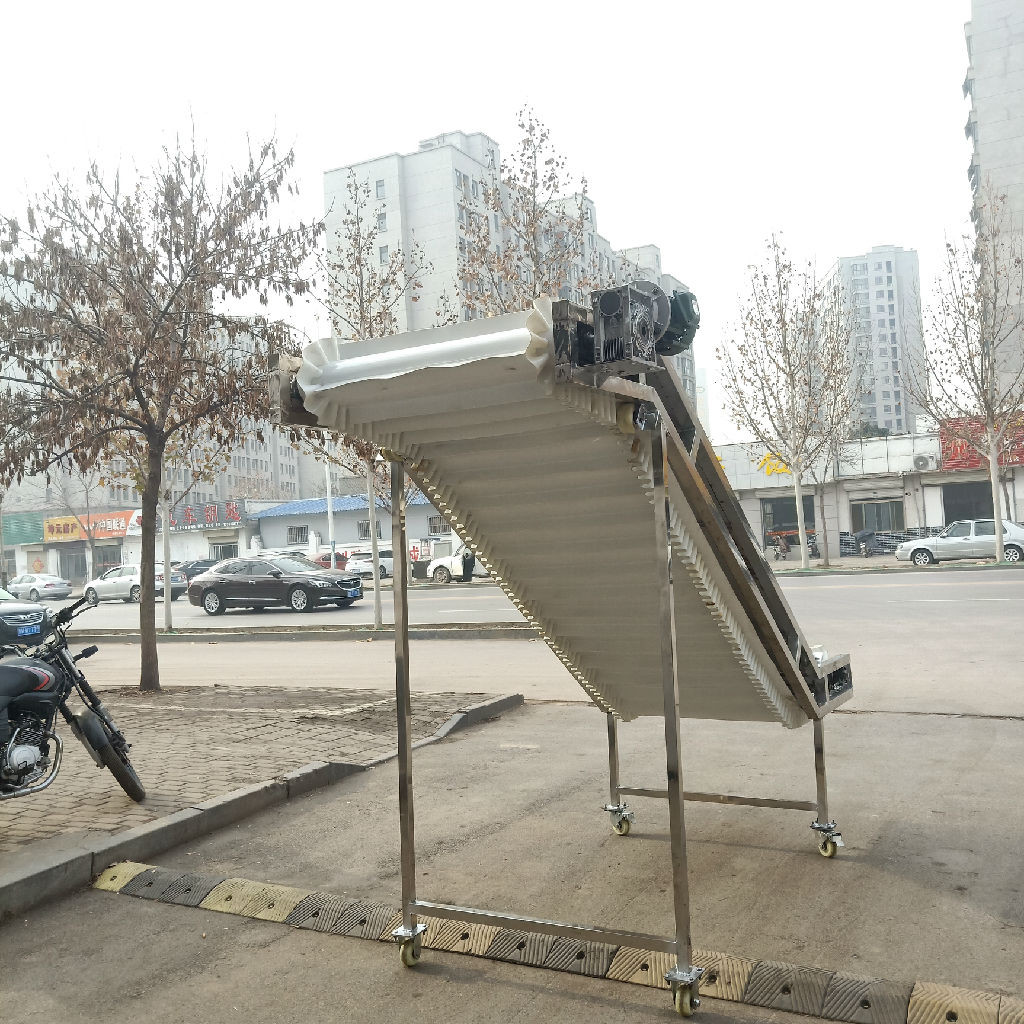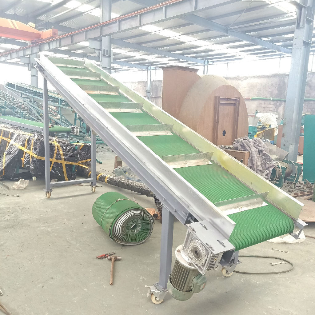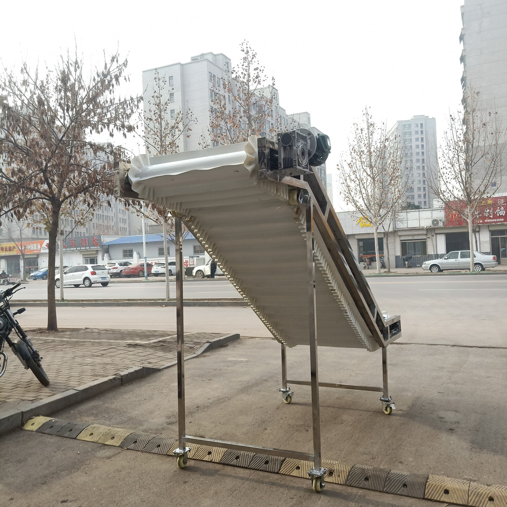 大倾角裙边爬坡皮带机,通过它可以将物料从初的供料点运送到卸料点,它可以与企业生产流程中,专业订制皮带输送机促销,的工艺流程相互配合,提高企业的生产效率。爬坡皮带输送机运用输送带的连续或间歇运动输送500kg以下的物品或粉状、颗装物品。爬坡式皮带输送机运用于有高低差的输送情况下,可完成连续输送,能平滑的与滚筒输送机或链板输送机接驳。爬坡皮带机输送带的材质有:帆布带(或尼龙带)、塑胶带、防静电PVC带、橡胶带(重的物体采用带钢丝的橡胶带)、金属网带等。