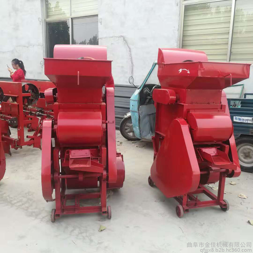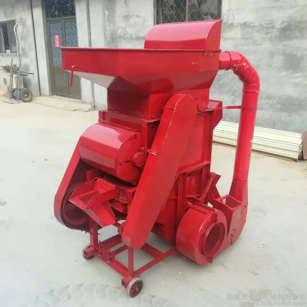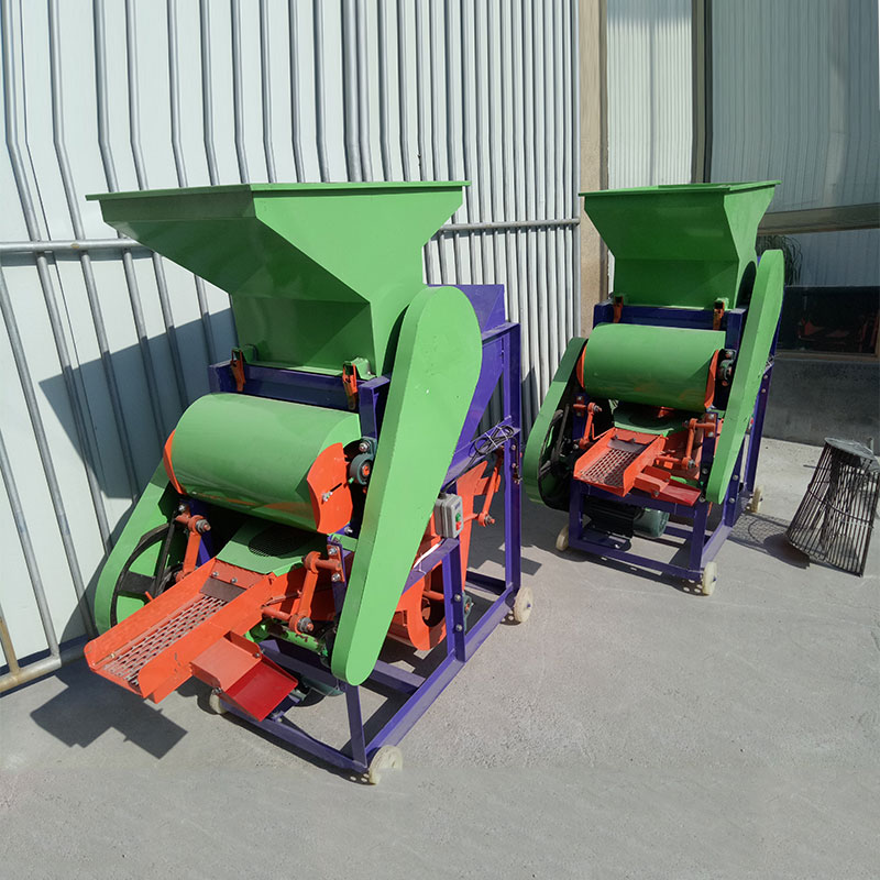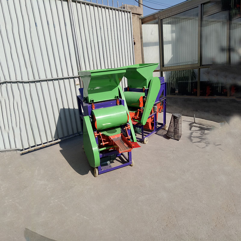 花生粒及破碎的花生壳在转子的旋转风压及打击下,通过一定高径的筛网(花生**次脱粒用大高筛网,清选后的小皮果更换成小高筛网进行第二次脱壳),这时,花生壳、粒受到旋转风扇的吹力作用,重量轻的花生壳被吹出机体外,花生粒通过震动筛的筛选达到清选的目的。
