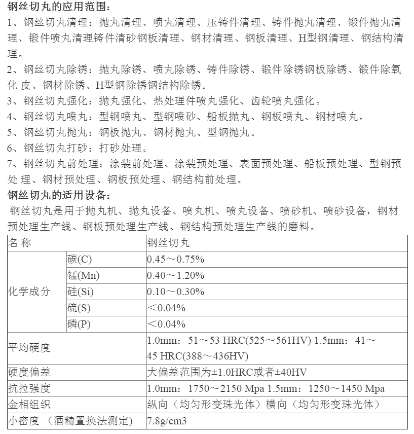 钢丝切丸清理:抛丸清理、喷丸清理、压铸件清理、铸件抛丸清理、锻件抛丸清理、锻件喷丸清理铸件、清砂钢板清理、钢材清理、钢板清理、H型钢清理、钢结构清理。