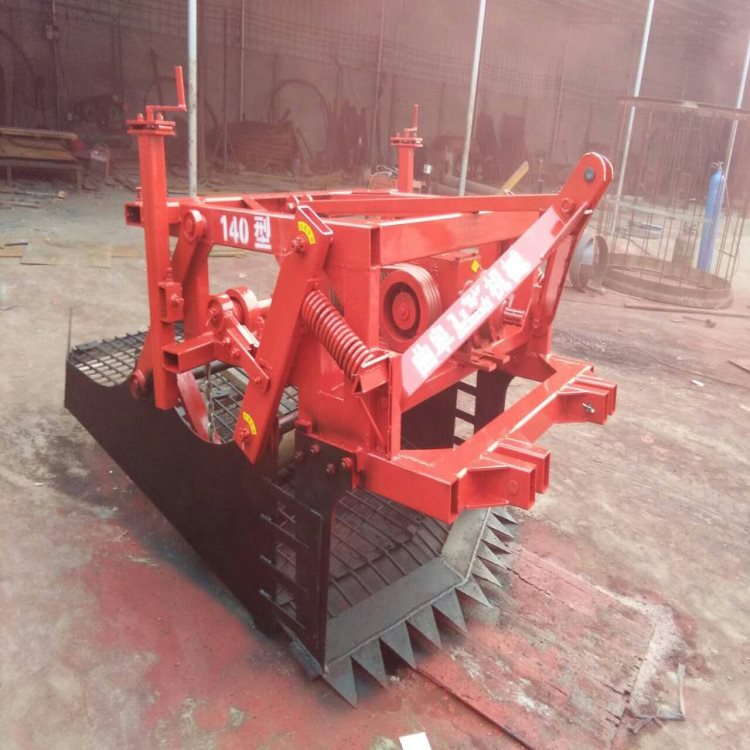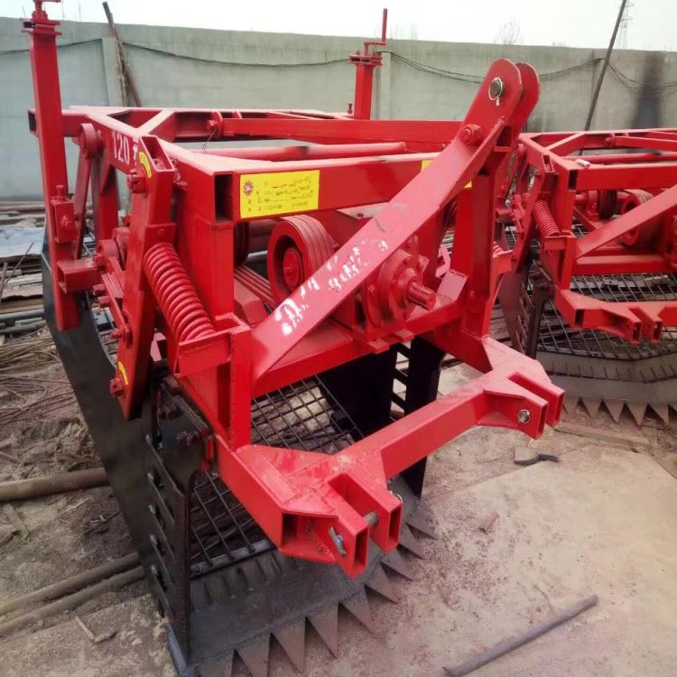 药材挖掘机是与60马力以上的大、中型轮式拖拉机配套的悬挂式薯类作物收获机具,适应于沙质土壤、中等粘土质栽植的马铃薯、红薯、花生及生地、丹参、远志、板蓝根、柴胡、黄姜、伏子、黄芹、川地龙等中药材的机械收获作业。