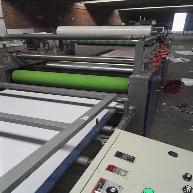 采用全自动电脑程控,自动完成涂胶,加热贴面.烘干.两次冷压,三次热压于一体,靠链条、链轮传送,结构紧凑合理,操作方便,速度可调。适用于防火板的表面贴面,还能将各种木质板(三合板、石膏板、密度板、刨花板)进行深加工贴面.如木纹纸、PVC波音、铝箔、免漆纸、高分子膜等.可生产各种花色的豪华装饰板.利润倍增,适合家具厂、人造板厂、乡镇企业和个体户接产.设备分为大中小多种型号,还可根据客户要求加工定做。