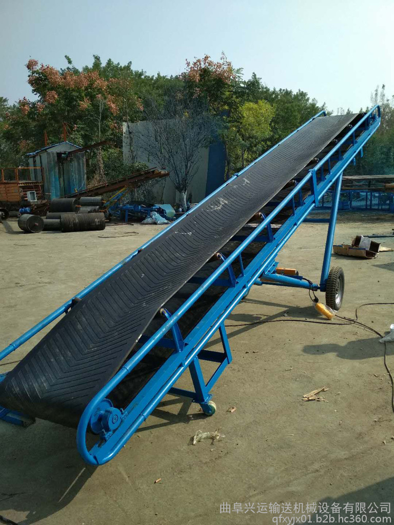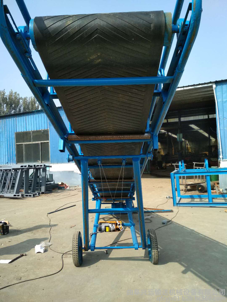 移动粮食输送机(食品输送机、粮食输送机械)适应运送散装或包装的粮食及小颗粒物料的输送,装卸,码垛,倒仓多种作用,并可由多台串联或用其它食品输送设备联合配套使用。