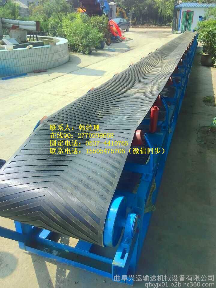 2、根据用户输送量的大小有不同宽度的皮带可供用户选用,而且还可以在机身尾部加装导料槽和挡板,避免了用户投料时物料滚落,设计更加合理和人性化。这种方式的设计多被用来输送一些粉状或者颗粒状的物料,如粮食、矿物粉料颗粒等。