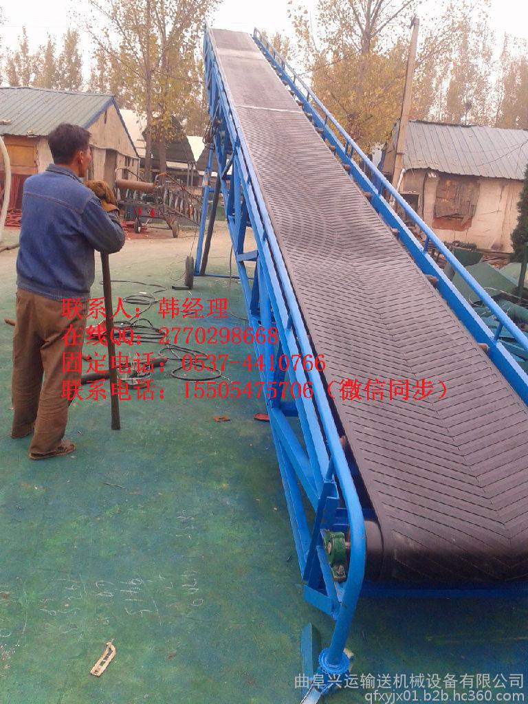 7、移动式皮带输送机的输送带还可以根据用户需要换成具有耐酸碱、耐腐蚀、耐磨等特性,方便化工、医药等行业使用。由于其操作方便、输送效率高等特点被广泛使用,已经成为粮库、矿山、工厂等行业所欢迎的高效输送设备。