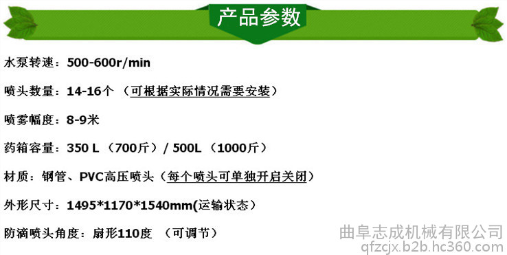 车载悬挂式打药机 大面积喷洒喷雾器 多喷头喷杆喷雾器 厂家