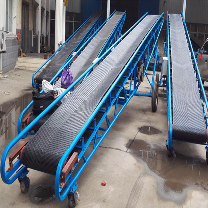 可移动式皮带输送机适用于散粮、包粮的输送、堆垛、装卸车等作业。有5米、8米、10米、12米、15米、18米、20米等规格,移动式皮带输送机有液压、电动、手动三种升降型式。可移动式皮带输送机具有快、慢两种速度、(也可配备调速电机,随意操控速度)托辊可选用平托辊、V型托辊、U型托辊,以适应散料、整包的不同要求,提高了设备的利用,发挥了一机多用的性能。在移动式皮带输送机机架两旁装可配有挡管或挡边,防止粮包在输送时掉包,防止粮食撒漏,便于散装粮食输送。大、小走轮均采用实心胶轮或充气橡胶轮,防止压碎粮食和仓库地面。小走轮具有自动转向的功能,保证了机器移动轻便灵活。移动式皮带输送机机架采用焊接的珩架结构,在包运集中载荷下有足够的强度和良好的钢性。