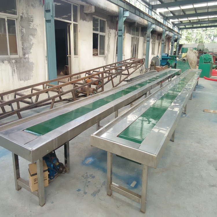 PD系列胶带输送机由电动滚筒、改向滚筒、双向螺旋橡胶托辊、防腐输送胶带、张紧装置、机架等装置组成。该机采用钢芯铸胶双向螺旋托辊,因螺旋的作用力使输送胶带始终在机架纵向中心运行,起到自定中心的作用,使胶带不偏跑,促使物料在运行中内聚,不使之外扑飞扬。该机托辊与胶带的磨损系数小,对粘湿物不结辊。其机长度及装配形式可根据用户要求确定,传动可用电滚筒,也可用带驱动架的驱动装置。本公司生产的皮带输送机具有输送量大、结构简单、维修方便、部件标准化等优点。