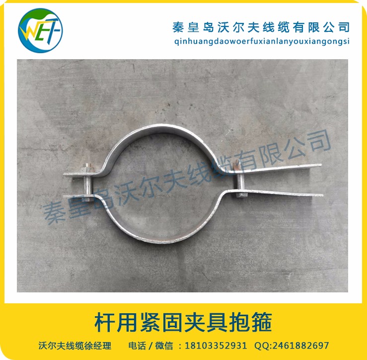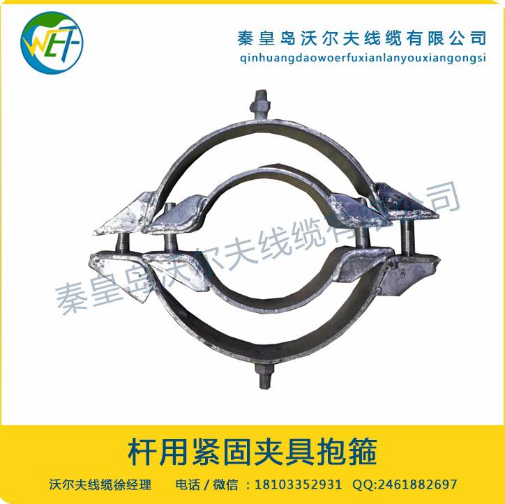 光缆紧固夹具产品简介:杆用紧固夹具(即光缆抱箍)一般和光缆耐张金具,光缆悬垂金具配套使用。根据光缆挂点处杆型设计的系列杆用紧固夹具,实现耐张线夹及悬垂线夹与杆塔的联接安装。?????????????????????????????????????????????