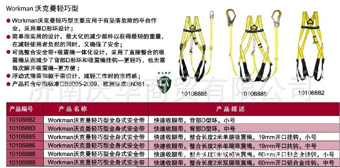 胸前的连接环用于人员的升降和爬梯的使用,腰部连接环用于工作定位的使用,
