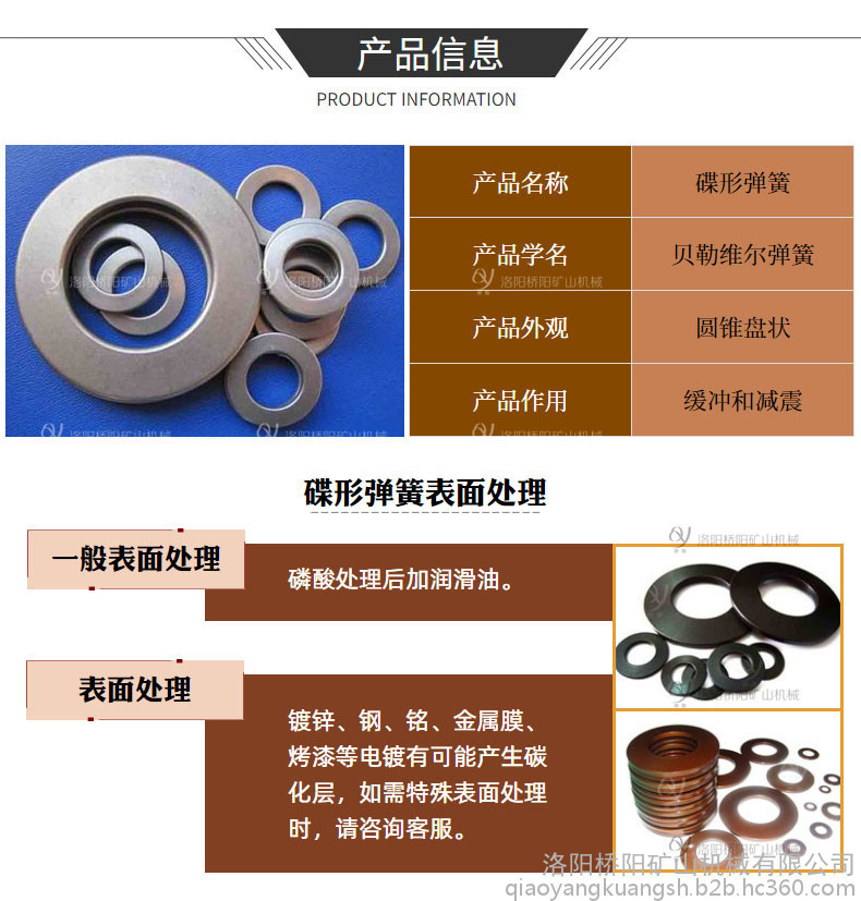桥阳140*72*8 盘形闸油缸碟形弹簧 提升机绞车碟形弹簧
