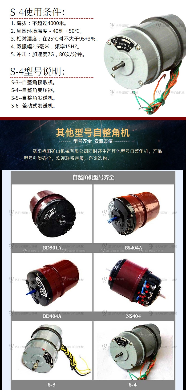NS404自整角机:本系列自整角机系统中通常是两个或两个以上组合使用,其任务是将转轴上的转角换成电气信号,或将电气信号变换成转轴的转角,实现角度的远距离传输、变换和接受。在随动系统和计算解答装置中借发送机和接受机之间无机械连接传递角位移的方式,达到自动指示角度、位置、距离和指令等目的。