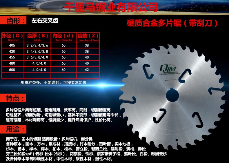 切割使用寿命长 。超薄锯路,木材利用高,锯屑量少,