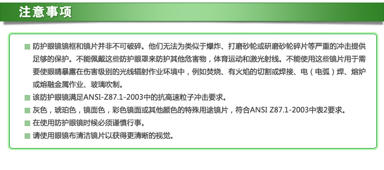 | 类型:防护眼镜 | 材质:聚碳酸脂镜片 |