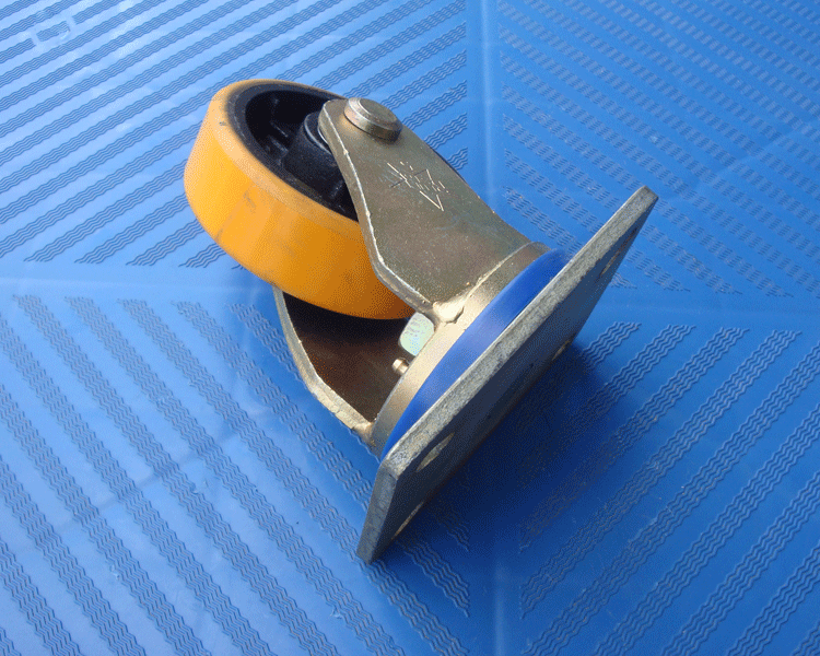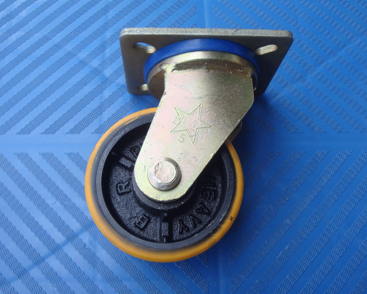 特重型5寸黄色铁心聚胺脂万向轮,单轮载重650KG,轮子安装高度175mm,轮片直径125mm,轮片宽度40mm,底板厚度8mm,底板尺寸111mmX142mm,安装孔距75mmX105mm,安装孔径12mmX20mm,轮子重量4.25KG,快递费以买方买的宝贝实际数量和买方实际路程为准,详情咨询店主。