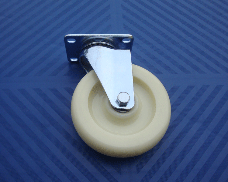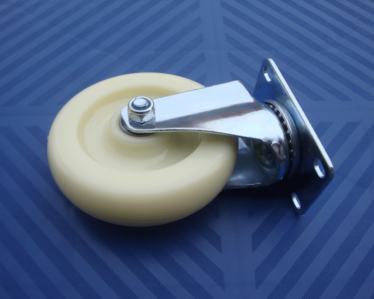 中型5寸双轴白尼龙万向轮,单轮载重110KG,总高150mm,轮片直径125mm,轮片宽度32mm,长方形底板外形尺寸61mmX91mm,安装孔距为45mmX75mm,孔径8.3mmX11mm,快递费以买方买的宝贝实际数量和买方实际路程为准,详情咨询店主。