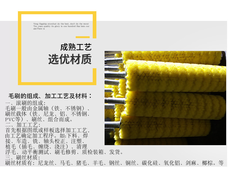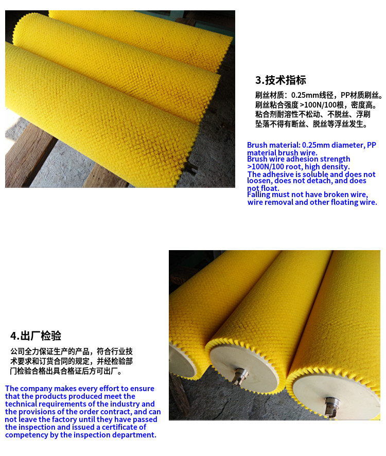 主导产品有圆盘抛光刷,电动滚刷清扫器,滚筒毛刷,钢丝刷,条形刷,皮带刷,圆盘刷,弹簧刷,尼龙刷,橡胶辊,海绵吸水辊,环卫车扫路刷,壁炉烟囱刷,洗瓶刷管道刷,玻璃清洗机毛刷辊,水果蔬菜清洗机毛刷辊,纺织印染业毛刷,陶瓷釉线刷,造纸印刷设备胶辊,防静电毛刷,金属抛光研磨刷,金属酸洗毛刷辊等其它。