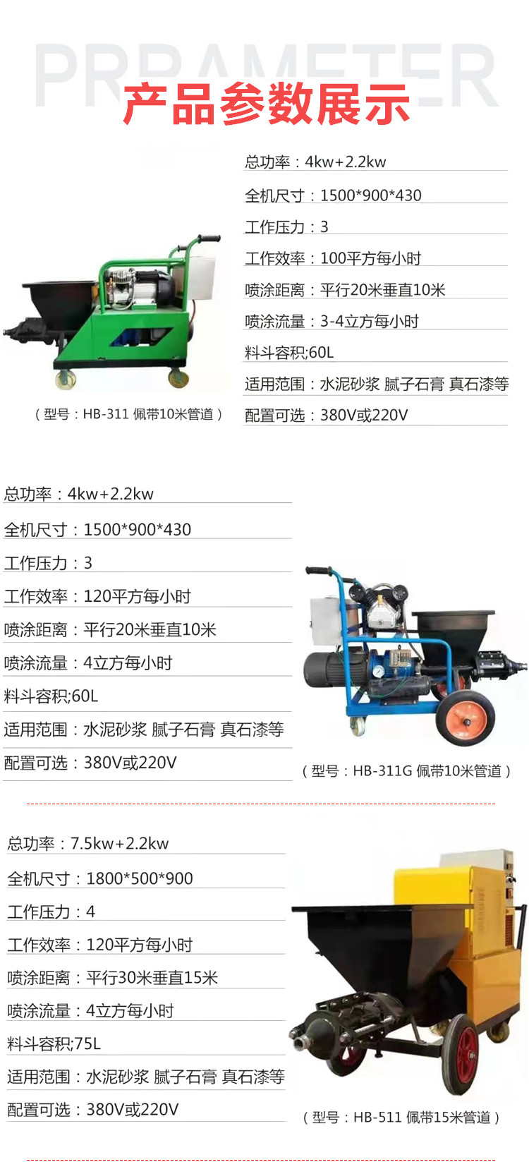 用途 砂浆、腻子的喷涂