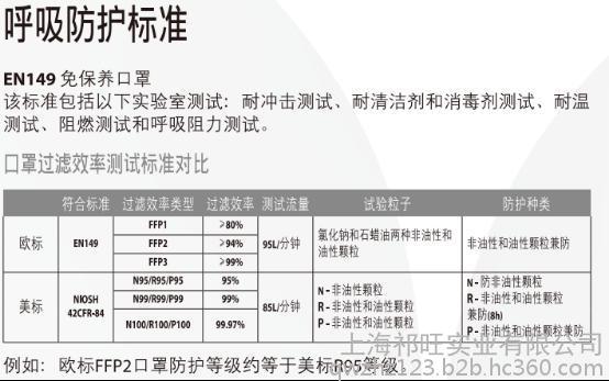 u 性能标准:符合欧洲89/686指令要求,安全无害、佩带舒适、柔韧透气,并符合以下欧洲标准:EN149:2001 标准 (20Xave)。