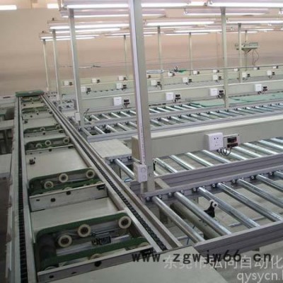 滚筒输送机结构简单,可靠性高,使用维护方便,适用于各类箱、包、托盘等件货的输送,散料、小件物品或不规则的物品需放在托盘上或周转箱内输送。能够输送单件重量很大的物料,或承受较大的冲击载荷。 结构形式有:按驱动方式可分为动力滚筒线和无动力滚筒线,按布置形式可分为水平输送滚筒线、倾斜输送滚筒线和转弯滚筒线。还可按客户要求特殊设计,以满足各类客户的要求。 标准规格:滚筒线按客户需求采用其它特殊规格。转弯滚筒线标准转弯内半径为R600、R900、R1200mm等,也可按客户需求采用其它特殊规格。直段滚筒所用的滚筒直径有¢38、¢50、¢60、¢76、¢89mm等。 设备特点:滚筒线之间易于衔接过渡,可用多条滚筒线及其它输送设备或专机组成复杂的物流输送系统,完成多方面的工艺需要。可采用积放滚筒实现物料的堆积输送。滚筒输送机结构简单,可靠性高,使用维护方便。 选型要点:1 、滚筒材质根据用户需要选用碳钢镀锌、镀铬、镀镍、铸胶(包胶)或不锈钢、钢制塑钢等不同材质。2 、碳钢机身表面处理可根据用户要求选择喷涂、喷塑、烤漆等,不锈钢机身可选择镜面抛光、亚光、喷沙、拉丝等处理。 3 、有速度调节要求的用户可选择变频调速或采用无级变速的减速电机。 选型参考: 1 、应首要根据载重量确定选用不同材质和型号的滚筒; 2 、食品行业应优先选择全不锈钢机身和不锈钢滚筒; 3 、一般输送机滚筒顶面高度略低于机身侧面高度,有特殊要求的用户可考虑机身侧面高度高于滚筒顶面高度或高度相同,根据需要可设置侧面挡板、挡边、护栏。