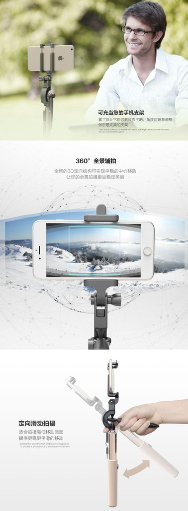 蓝牙 三脚架 自拍杆 增稳自拍杆 可拆卸三脚架