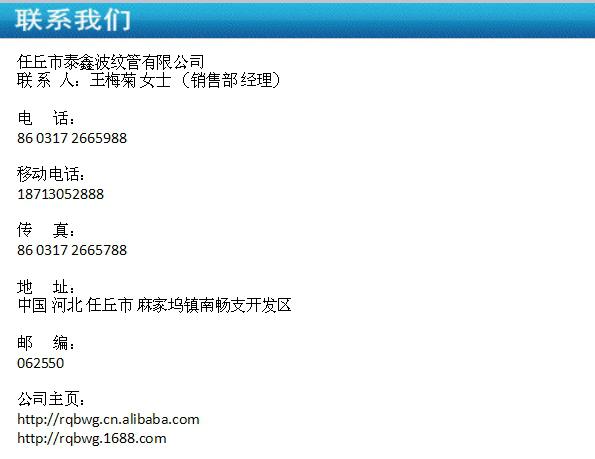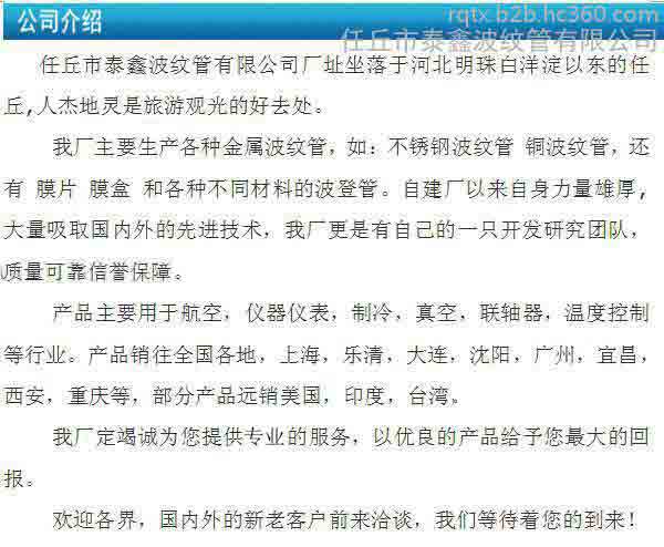 慧聪网厂家任丘市泰鑫波纹管有限公司为您提供河北泰鑫 非标定制不锈钢弹簧管 YA100-2.5MPa的详细产品价格、产品图片等产品介绍信息,您可以直接联系厂家获取河北泰鑫 非标定制不锈钢弹簧管 YA100-2.5MPa的具体资料,联系时请说明是在慧聪网看到的。
