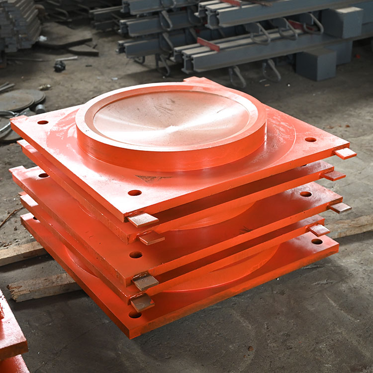 盆式橡胶支座是由铸钢底盆,橡胶垫,中衬板,纯铜密封圈,*磨四氟板,*轧不锈钢,承压上座板组成。铸钢底盆内的橡胶垫可缓桥梁板突然受压是对桥墩的冲击,桥梁受外力作用产生位移时镶嵌在中衬板内的*磨四氟板涂抹硅脂油后与不锈钢摩擦减少的位移是的冲击力,使位移更加灵活。