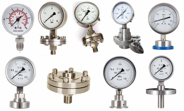 1、带隔膜密封的全不锈钢压力表;