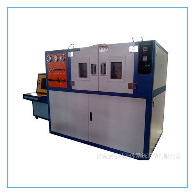 新型伺服脉冲压力试验台是专门对各种汽车空调管、冷凝器、散热器、工程机械高压胶管、硬管、航空管汇、容器、阀门及传感器等等容器与管路阀门类进行压力脉冲疲劳试验,最大限度模拟工件实际使用状况,考核其寿命和疲劳破坏形式,如试样破坏或机器出现故障,还可自动识别并作相应处理,真正做到自动化控制、智能化无人值守。