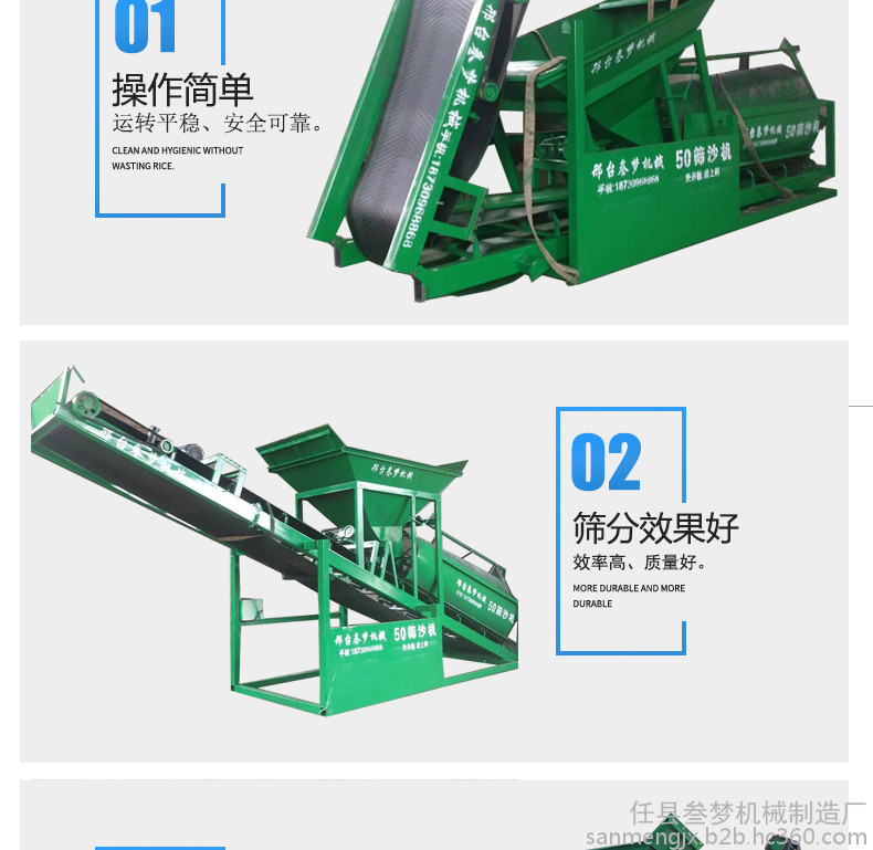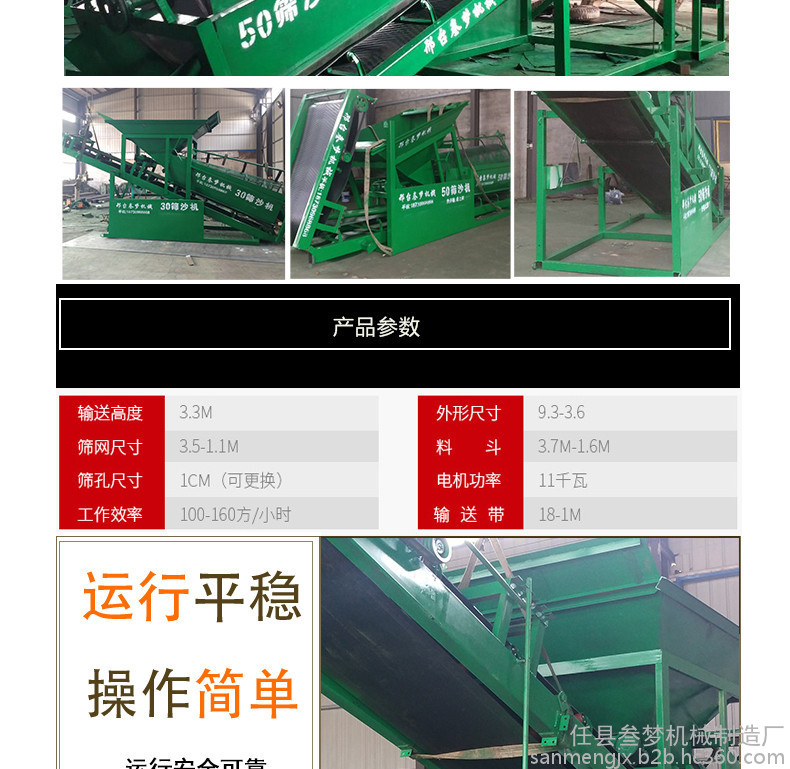 任县叁梦机械制造厂是筛沙机专业生产加工的公司,拥有完整、科学的质量管理体系。任县叁梦机械制造厂的诚信、实力和产品质量获得业界的认可。欢迎各界朋友莅临参观、指导和业务洽谈。任县叁梦机械制造厂是一家现代化专业矿砂筛选设备厂家,是集科研开发、工程设计、生产安装、调试维修服务于一体的的知名矿砂设备生产企业。 本厂主要产品有:筛砂机、工地筛沙机、砂石分离机、滚筒式筛沙机、建筑筛沙机、沙石筛分机械等各种筛砂矿机械。产品被广泛应用于:沙场、冶金、矿产、建筑工地、高速公路及铁路建设等行业。 任县叁梦机械制造厂,始终贯彻“以质量求生存,以科技求发展;不断进取,力求**,始于顾客要求,终于顾客满意”的质量方针。多年来我厂产品深受广大用户的青睐,畅销黑龙江、内蒙古、辽宁、吉林、陕西、山西、河北、河南、湖北、安徽等10多个省