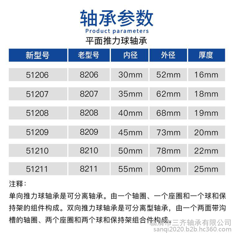 三齐**平面推力球轴承 51408 轴承 8408轴承 机械压力轴承