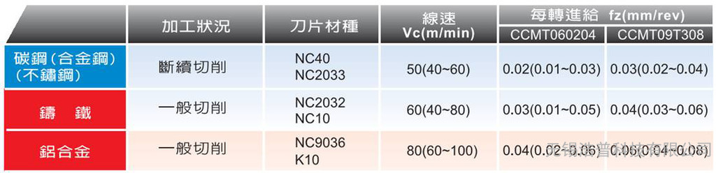 加工参数推荐: