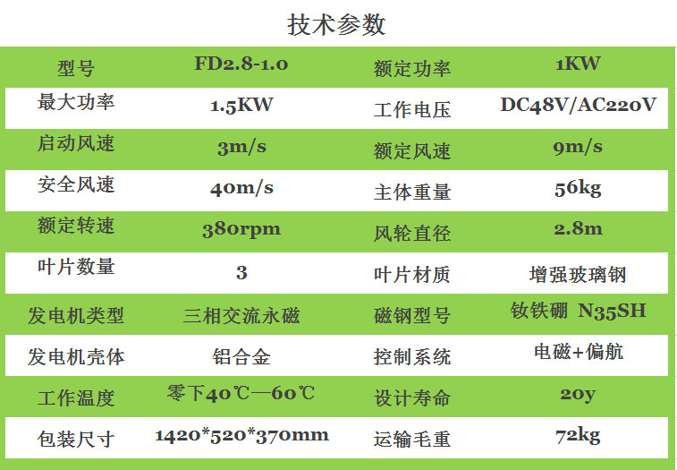 | 风轮直径 | 2.8m |