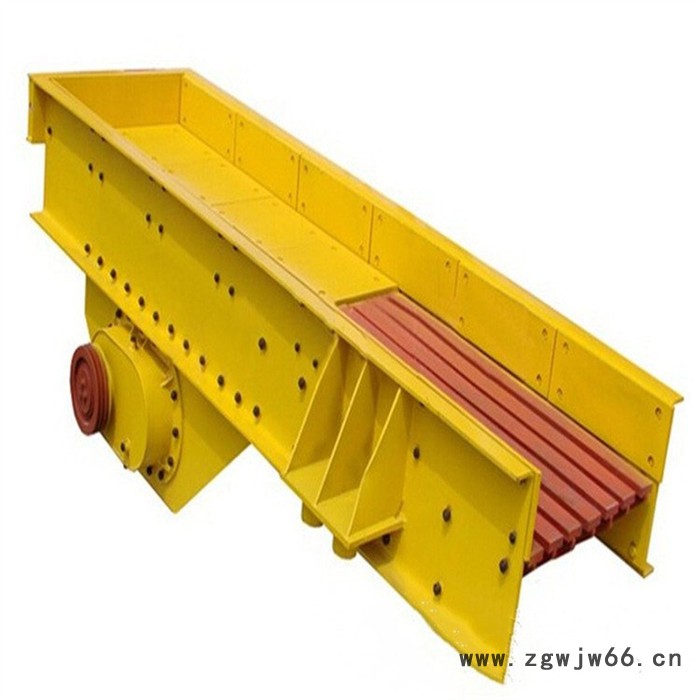 振动给料机又称振动喂料机。振动给料机在生产流程中,可把块状、颗粒状物料从贮料仓中均匀、定时、连续地给到受料装置中去,在砂石生产线中可为破碎机械连续均匀地喂料,并对物料进行粗筛分,广泛用于冶金、煤矿、选矿、建材、化工、磨料等行业的破碎、筛分联合设备中。