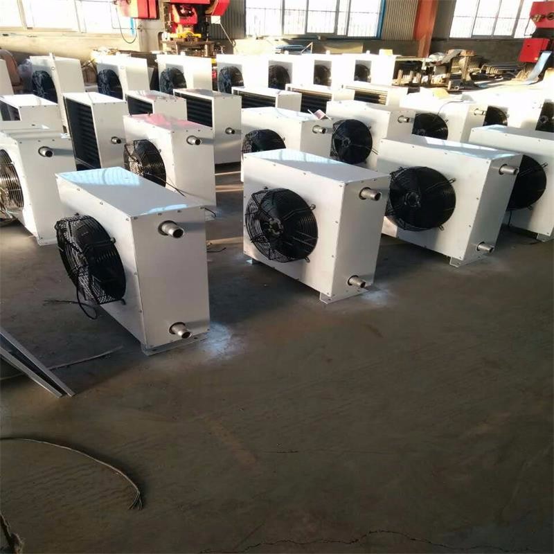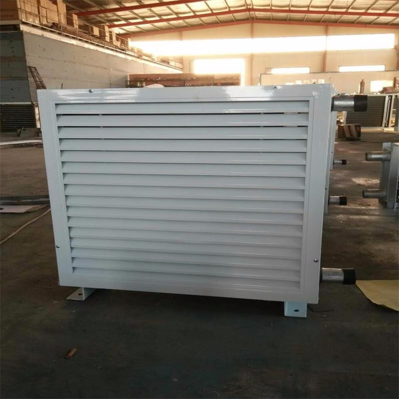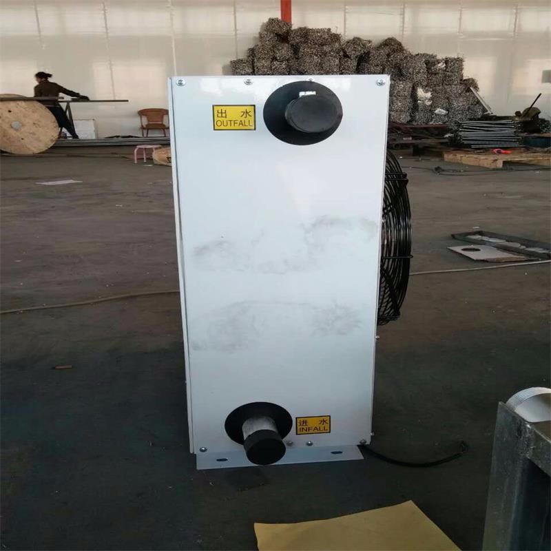 GS钢制热水暖风机是以热水(不低于90度)为热媒的采暖设备。它将室内循环加热,是工矿企业的厂房和公共建筑中常用的采暖器之一,该型暖风机主要由散热器、外转子轴流风机、格栅百叶等组成,散热器均为四排管,热媒由下部的接管进入,上部的接管排出,热量管壁传导绕在钢管外表面的铝翅片上与空气热交换,叶轮由电动机带动,迫使空气流经排管外翅片,由此获得热量,从而使空气温度升高,百叶用来调节空气的流向。