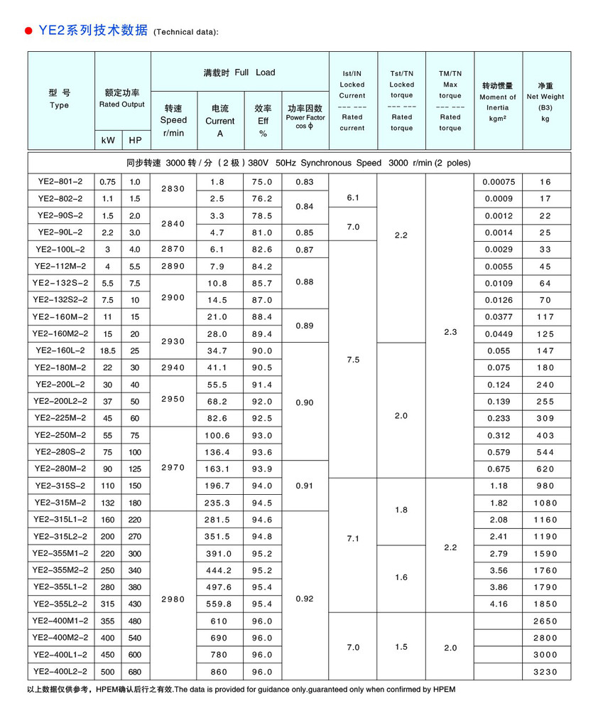 | 型号 | YE2(YX3) |