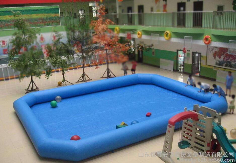 充气水池主要材料是加网PVC布料,厚度一般为0.9mm,大小可随时订制,一般池的形状为长方形的,当然也会出现其他不规则的形状,比如圆形,菱形。所用材料无毒、无色、无味,达到欧美标准的环保材料,由质量监督局检测结果显示此材料对皮肤无刺激性,无毒性对儿童完全没有伤害。此材料为一种专业的充气布,耐寒性好,可达零下40度低温;阻燃性好。由于水压的作用,高于40公分的水池采用双管。充气水池相关配件:配送相应风机,胶水和修补材料。