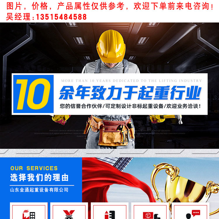 | 山东金通起重设备有限公司位于泰山脚下,羊祜故里,是现代化生产起重机的厂家,具备质量监督检验检疫总局颁发的特种设备制造、安装、改造、维修许可证。公司创建于 1989 年,前身是青云起重机总厂,于 2004 年改组。多年来公司不断的引进国内外生产技术,公司技术力量雄厚,拥有工程技术人员,并率先通过 ISO9001 国际质量体系认证,拥有自主的知识产权和工业产权。具备六十多个品种及各种非标起重设备的生产能力,产品国内 30 多个省市和 10 多个地区。 公司主要产品有:单、双梁桥式起重机、门式起重机和造船起重机、电动葫芦及防暴、绝缘、电磁、变频、遥控及冶金铸造等系列起重机,良好的企业形象具备了极强的市场竞争能力。公司自创办以来,取得了骄人的成绩和良好的社会效益。精益求精的产品制造,一切以客户为中心及坚持以科技创新为企业发展主体,具有科学的管理体系,拥有高素质的人才,完备的检测手段。公司品种齐全、价格合理、售后服务周到。还可根据用户要求,设计各种非标起重机。 愿我们的产品成为贵单位理想的选择,成为我们的合作伙伴! |