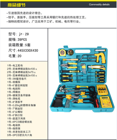 电工工具 电工工具箱29件套 建荣教学设备有限公司
