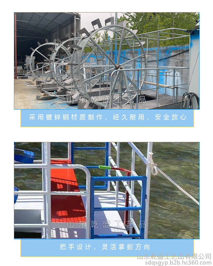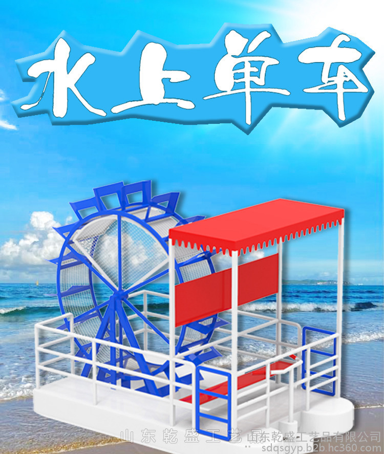 山东乾盛工艺品 景区观光娱乐设施设备带蓬遮阳水上游乐船人力脚踏船轨道自行车滚筒脚蹬船旅游观光亲自互动多人单车新款铁艺定制