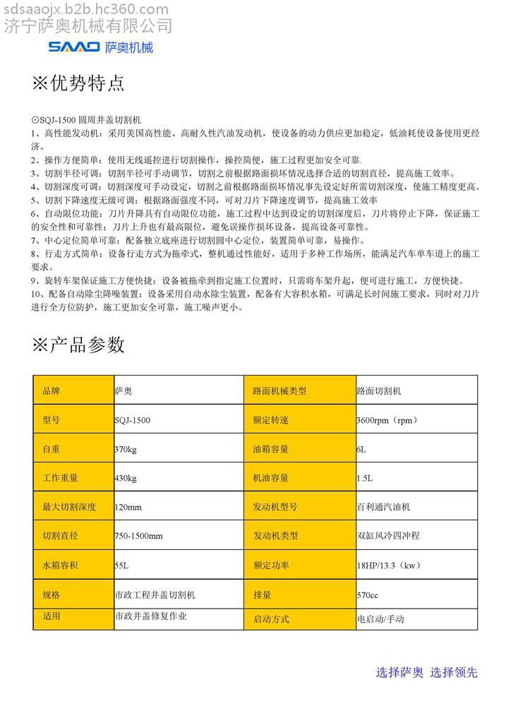萨奥小型窨井盖维修专用切割机 无线遥控 切圆一次成型 效率高 安全性好