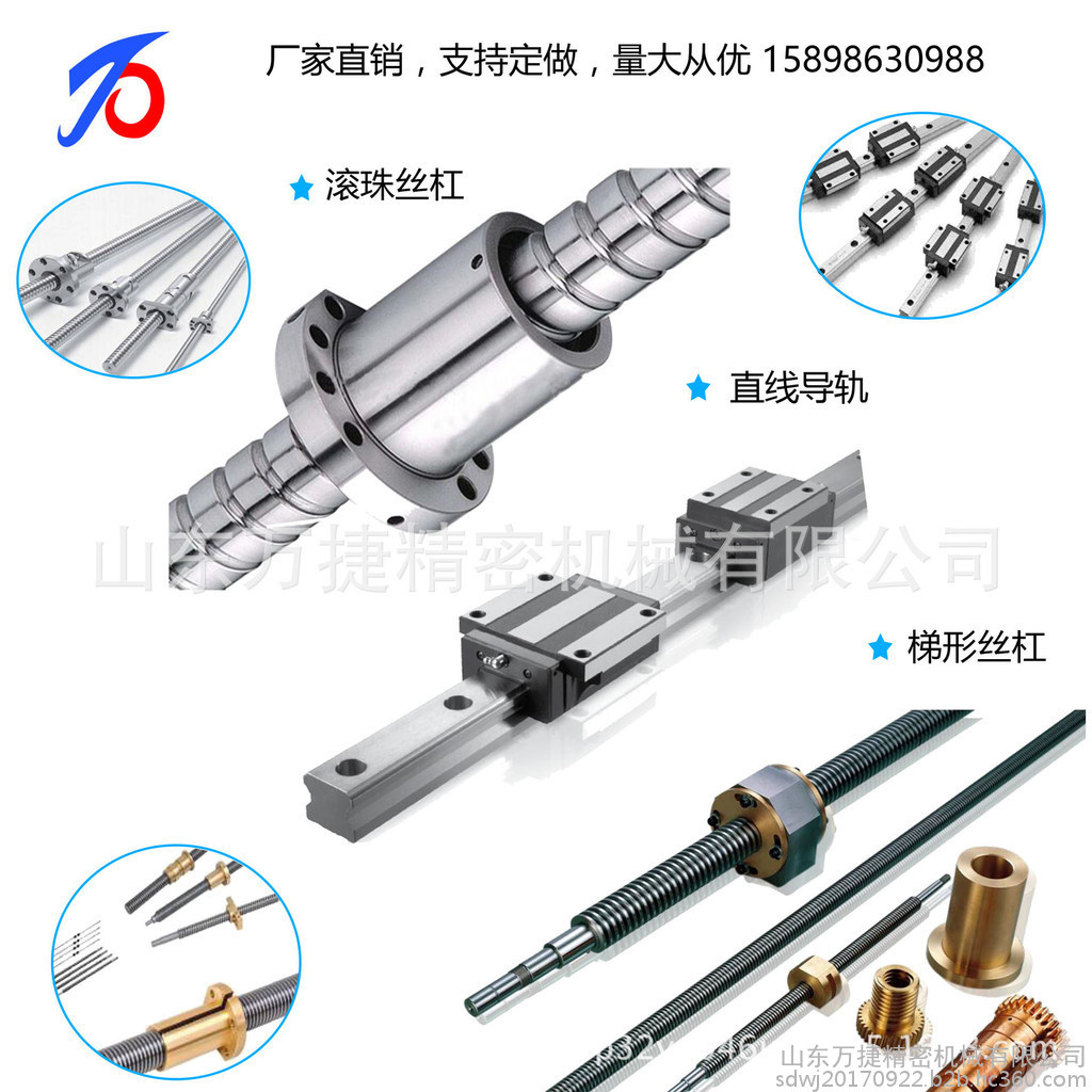 山东万捷精密机械有限公司生产的滚珠丝杆材质为轴承钢、不锈钢、等具体材质可订做,我们采用先进的硬铣削、在线检测修正系统和精密磨削工艺,产品型号有06-08-10-12-16-20-25-32-40-50-63-80-100-120-160等,具体型号或非标丝杆可订制。电话:15898630988