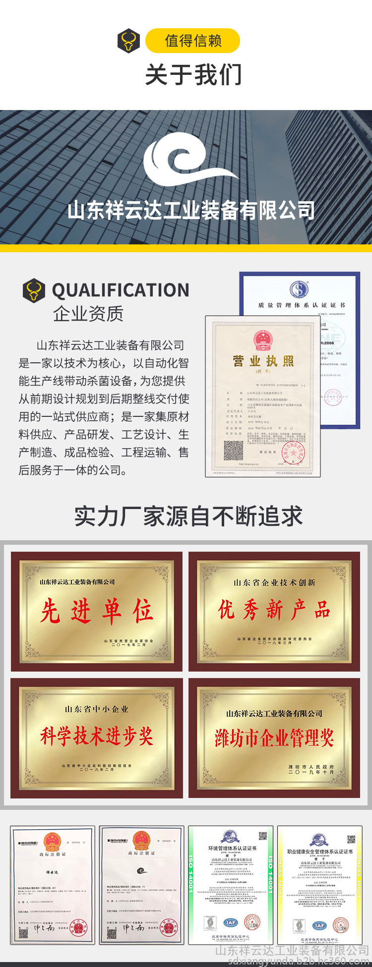 山东祥云达工业装备有限公司为打造食品机械行业而不断创新研发节能、环保、低碳的新型设备。愿以质量优的产品、好的质量和完善的售后服务于用户,关注您的需求,超越您的期望,以我们的努力成**您事业辉煌的价值。
