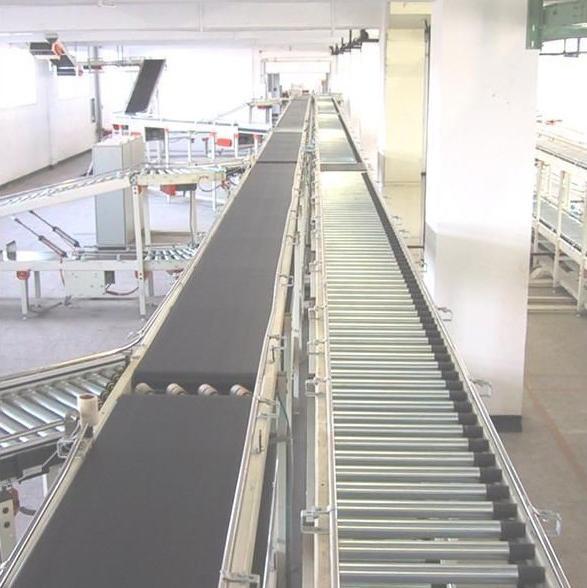 动力滚筒输送机:动力滚筒输送机是滚筒输送机中重要的一种,适用于各类箱、包、托盘等件货的输送,散料、小件物品或不规则的物品需放在托盘上或周转箱内输送。动力滚筒输送机适用于底部是平面的物品输送,常用于水平的或向上微斜的输送线路。驱动装置将动力传给滚筒,使其旋转,通过滚筒表面与输送物品表面间的摩擦力输送物品。 按驱动方式有单独驱动与成组驱动之分。单独驱动的每个辊子都配有单独的驱动装置,以便于拆卸。成组驱动是若干辊子作为一组,由一个驱动装置驱动,以降低设备造价。成组驱动的传动方式有齿轮传动、链传动和带传动,动力式辊子输送机一般用交流电动机驱动,根据需要亦可用双速电动机和液压马达驱动。