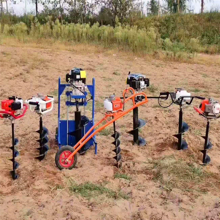 植树挖坑机用途:主要用于植树前的穴状整地作业,也可用于挖追肥穴或埋桩柱的坑等。又称穴状整地机。 便携式挖坑机和悬挂式两类,广泛用于大面积植树造林,―各种果树施肥、各种树木种植、大棚立柱埋设、葡萄、香蕉等作物支架、防风架孔、冬季冰上垂钓用孔、冬季水产养殖通气孔、高速公路、铁路等围栏柱孔等。地钻功能多,一机多用,应用范很广。